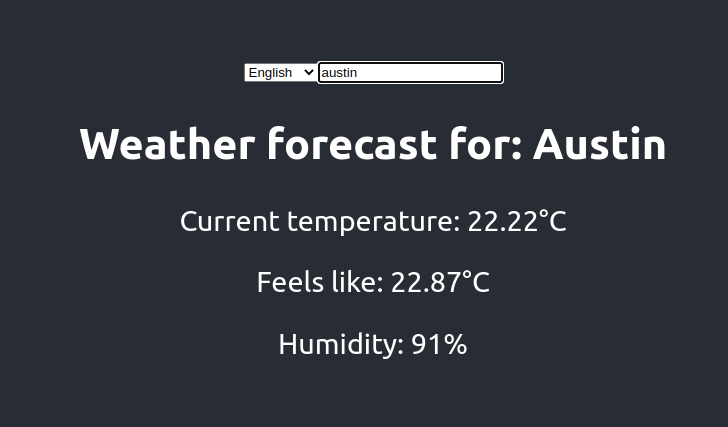 handleCityChangefunction, we update thecitystate with the new city entered by the user. - Finally, the component renders an input field for entering the city name, as well as the weather data displayed in the chosen language using the translation keys.