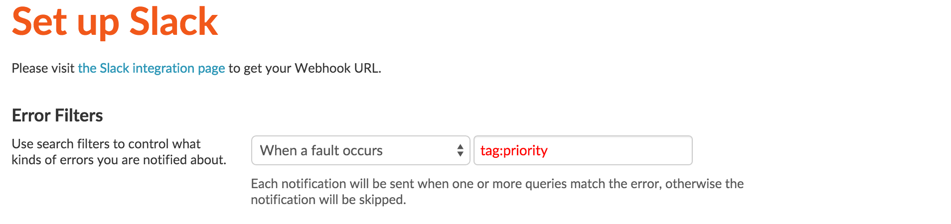 With our routing rules, it's simple to make this happen. In the screenshot below, we're setting up a slack room specifically for staging errors: